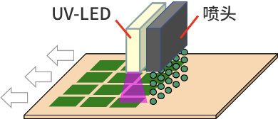 Inkjet噴墨是指從噴墨頭噴嘴噴出約20μm光硬化性墨水進(jìn)行印刷的方式。