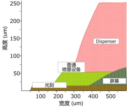 圖表2各種方法的印刷范圍/高度比較